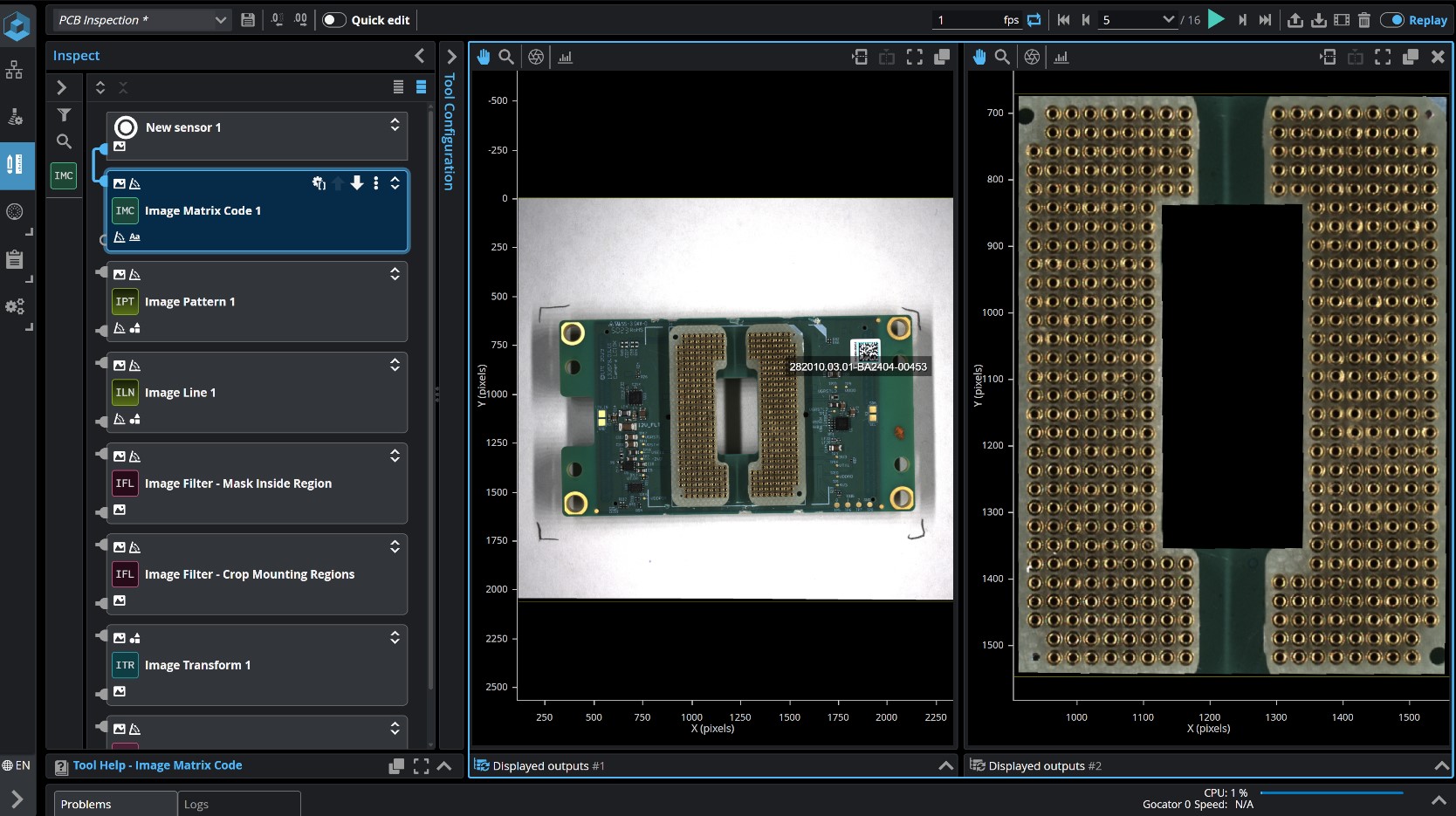 Las cámaras inteligentes 2D Gocator® están impulsadas por GoPxL, una plataforma de software basada en navegador con un conjunto completo de flujos de trabajo de visión integrados que comprenden cadenas de herramientas preconfiguradas que no requieren codificación ni software externo. Simplemente conéctese, configure y ejecute sus inspecciones directamente en la cámara. Ya sea que esté alineando piezas, midiendo espacios, detectando defectos o leyendo códigos de barras, Gocator le brinda la capacidad de construir canalizaciones de inspección completas con facilidad y escalarlas a través de su línea sin complejidad adicional.