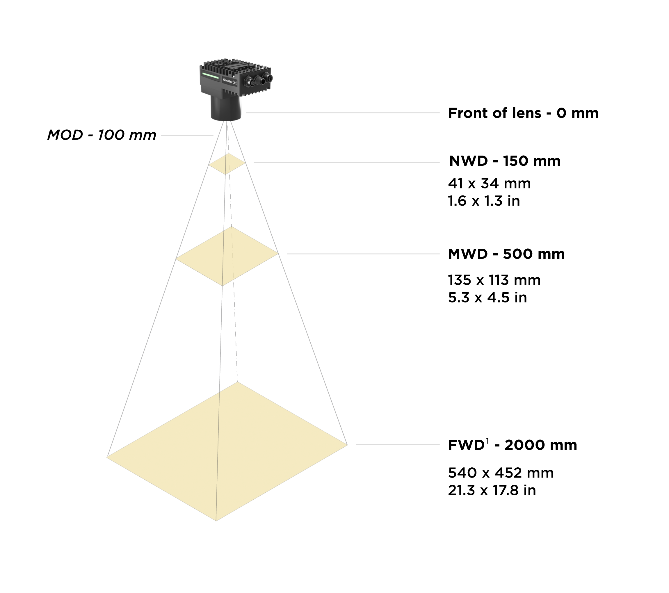 MOD = Minimum Object Distance; NWD = Near Working Distance